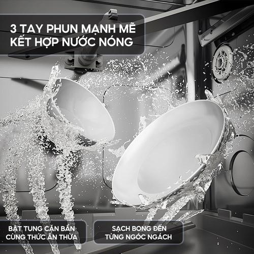Không chỉ sạch khô triệt để, không còn bóng dáng của xà phòng, mà còn được tiệt trùng hiệu quả gấp 3 lần so với các sản phẩm máy rửa bát thông thường giúp bữa ăn thêm ngon miệng, bảo vệ sức khỏe.