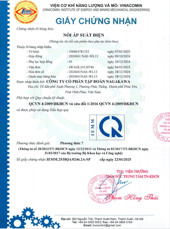 Sản phẩm được sản xuất theo tiêu chuẩn chất lượng cao, đảm bảo an toàn và hiệu quả sử dụng. Sản phẩm có giấy chứng nhận của Viện cơ khí năng lượng và mỏ - VINACOMIN.