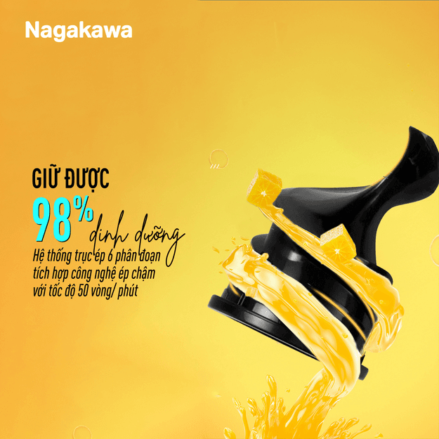 Máy ép chậm NAG0818 sở hữu công nghệ ép chậm với tốc độ ép 50 vòng/phút đảm bảo không sinh nhiệt, không làm mất chất rau củ trong quá trình hoạt động. Cơ chế này giúp máy ép chậm Nagakawa NAG0818 giữ được 98% chất dinh dưỡng, 100% hương vị. Trục ép nhựa PMMA có độ cứng gấp 10 lần thủy tinh thông thường an toàn vệ sinh thực phẩm, ép khô bã, tách nước tối đa.