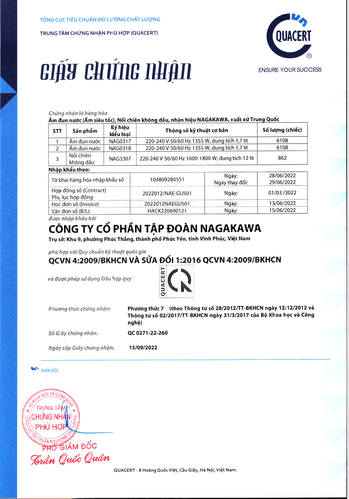 Sản phẩm được sản xuất theo tiêu chuẩn chất lượng cao, đảm bảo an toàn và hiệu quả sử dụng. Sản phẩm có giấy chứng nhận của Trung tâm chứng nhận phù hợp - Tổng cục tiêu chuẩn đo lường chất lượng