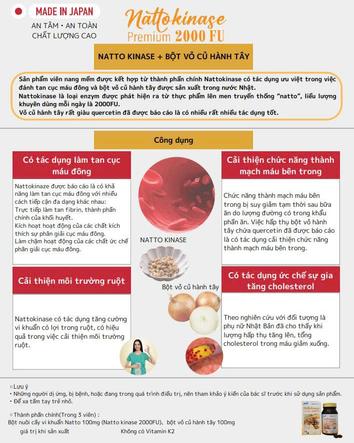 - Liều lượng cao cấp: 2000FU nattokinase mỗi ngày, hiệu quả vượt trội so với các sản phẩm thông thường.