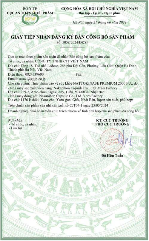 Bạn đang tìm kiếm một sản phẩm hỗ trợ sức khỏe tim mạch tự nhiên, an toàn và hiệu quả? Thực phẩm Hỗ trợ bảo vệ sức khỏe Nattokinase Premium 2000FU là lựa chọn lý tưởng, được chiết xuất từ enzyme nattokinase nổi tiếng của Nhật Bản. Với liều lượng cao 2000FU mỗi khẩu phần, sản phẩm giúp hỗ trợ làm tan cục máu đông, thúc đẩy lưu thông máu và bảo vệ hệ tuần hoàn. Được sản xuất theo tiêu chuẩn quốc tế nghiêm ngặt, đảm bảo chất lượng vượt trội và an toàn cho người sử dụng.