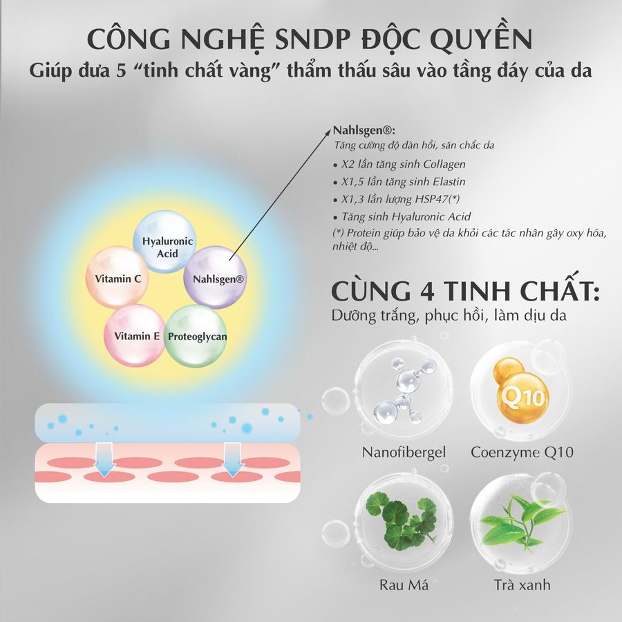 + Magnesium Ascorbyl Phosphate (vitamin C), Tocopheryl Acetate (vitamin E): Chống oxy hóa, cải thiện da đều màu, giúp làm sáng da và làm mờ các vết thâm, nám da