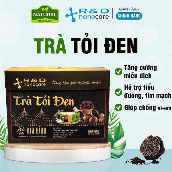 Thành phần: Trà túi loc tỏi đen với thành phần từ: Tỏi đen Gia Bình, gạo lứt, gạo mầm, đậu đen, dịch chiết tỏi, bạc hà, hoa dâm bụt.