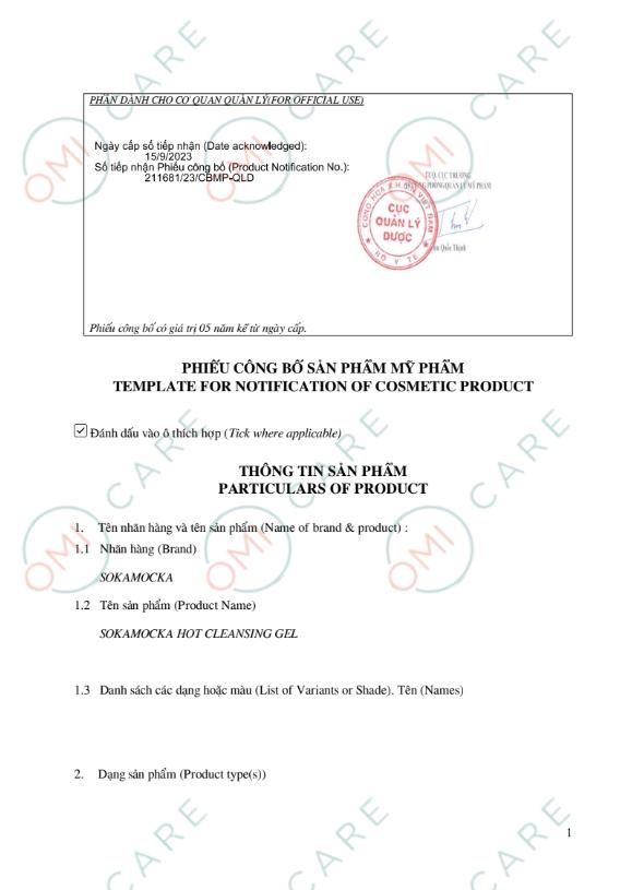 Gel Tẩy Trang Nóng Sokamocka được sản xuất theo tiêu chuẩn quốc tế nghiêm ngặt, đảm bảo an toàn và chất lượng vượt trội.