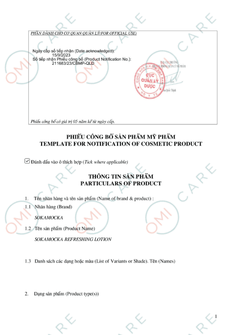 NƯỚC DƯỠNG ẨM VÀ LÀM MỀM MỊN DA SOKAMOCKA (180 ML) (Lọ)