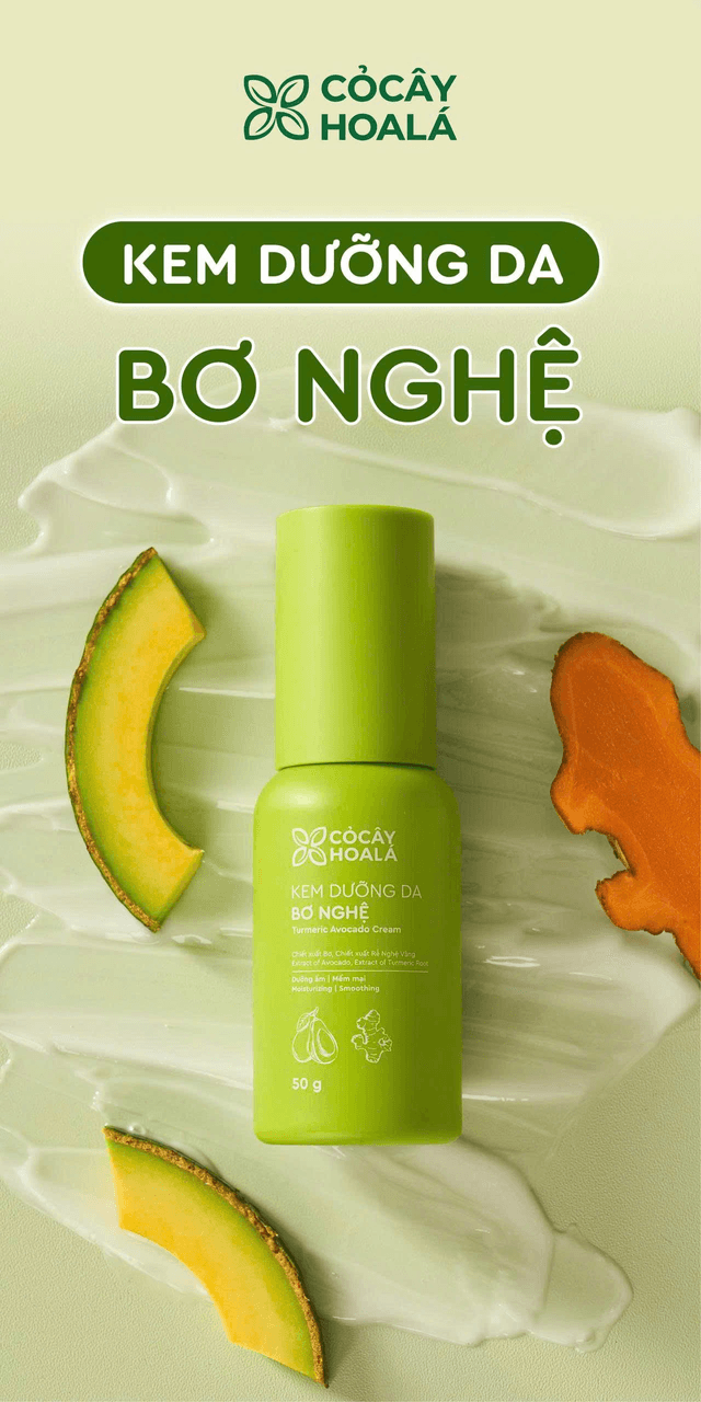 [Tặng Bột khử mùi Gạo Trà trị giá 80.000] Kem Dưỡng Da Bơ Nghệ Cỏ Cây Hoa Lá 50g
