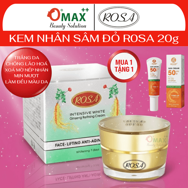 Kem ROSA Nhân Sâm Đỏ 20g - Rosa Intensive White Ginseng Refining Cream - Trắng Da & Chống Lão Hóa Vượt Trội