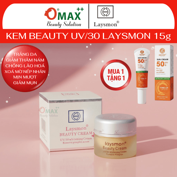 Kem Laysmon UV/30 Beauty Cream 15g (Đài Loan Chính Hãng) - Dưỡng Trắng, Mờ Thâm Nám & Giảm Mụn Hiệu Quả