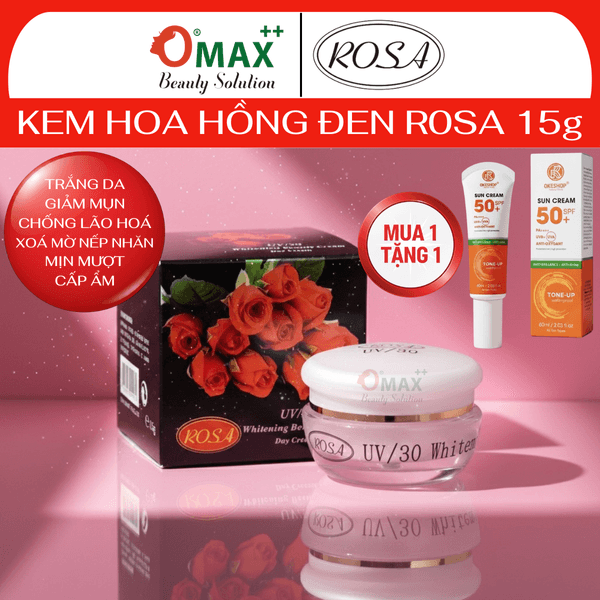 Kem ROSA Hoa Hồng Đen Whitening Beauty Cream 15g - Dưỡng Trắng, Chống Lão Hóa & Ngừa Mụn Hiệu Quả (UV/30)