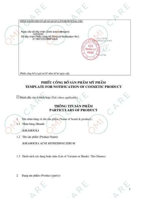 Tinh Chất Dưỡng Da Ngừa Mụn Sokamocka được sản xuất theo tiêu chuẩn quốc tế nghiêm ngặt, đảm bảo an toàn và chất lượng vượt trội.