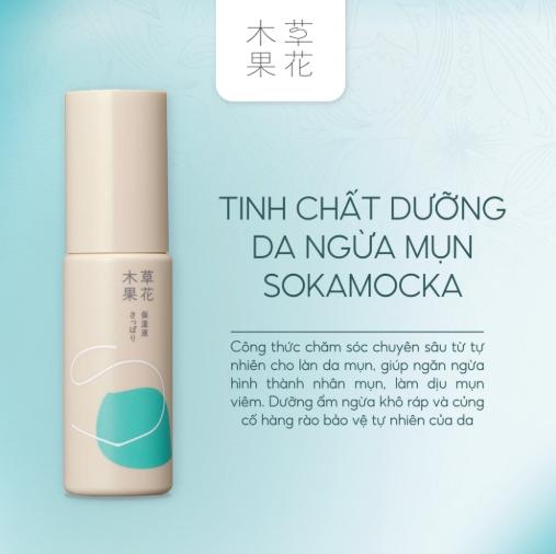 Tinh Chất Dưỡng Da Ngừa Mụn Sokamocka là sản phẩm chăm sóc da cao cấp đến từ Nhật Bản, được thiết kế dành riêng cho làn da dễ bị mụn trứng cá, da khô ráp hoặc dầu thừa. Sản phẩm cung cấp độ ẩm sâu, giúp ngăn ngừa và cải thiện tình trạng da khô ráp do thiếu ẩm, đồng thời dưỡng da mềm mịn và ngăn ngừa tắc nghẽn lỗ chân lông dẫn đến mụn viêm. Với công thức tự nhiên, tinh chất củng cố hàng rào bảo vệ da, tái sinh làn da tươi trẻ, mang lại vẻ rạng rỡ tự nhiên. Đặc biệt hiệu quả với mụn trứng cá ở người lớn và mụn cám, mụn viêm ở người trẻ tuổi, đây là giải pháp lý tưởng cho da nhạy cảm cần ngừa mụn mà vẫn dưỡng ẩm tối ưu.