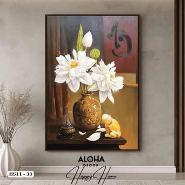 Tranh Hoa Sen Trắng Trong Bình Nghệ Thuật, Tranh Decor Phong Thủy Bình An – Aloha Decor HS11-33
