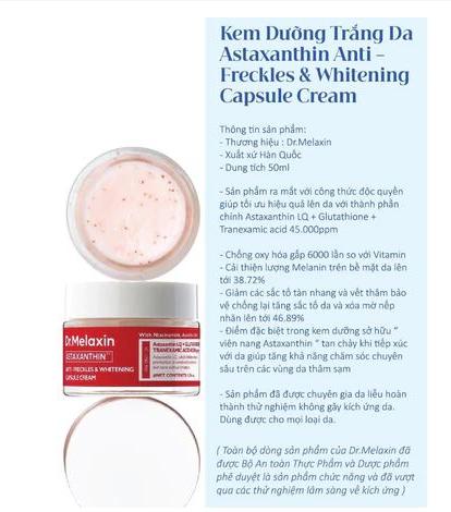 Lý do nên chọn Dr. Melaxin Astaxanthin Anti-Freckles & Whitening Capsule Cream