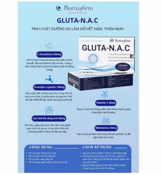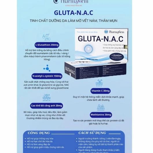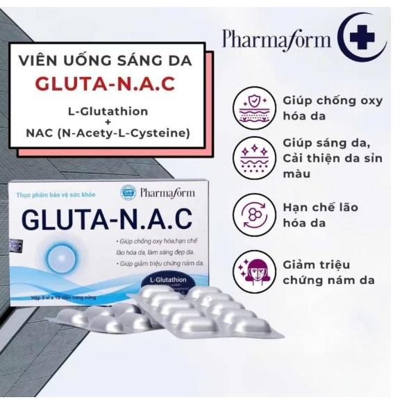 Viên Uống Trắng Da Pharmaform Gluta-N.A.C Hộp 30 Viên: Bí Quyết Sáng Da, Mờ Nám, Giảm Thâm Mụn Và Ngừa Lão Hóa