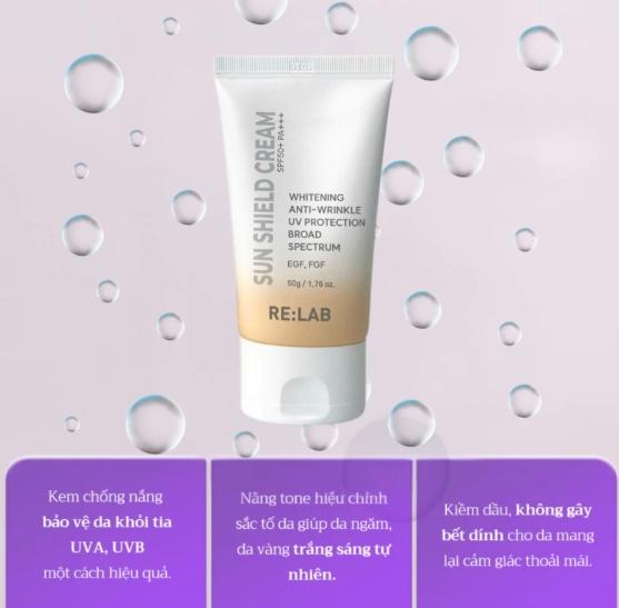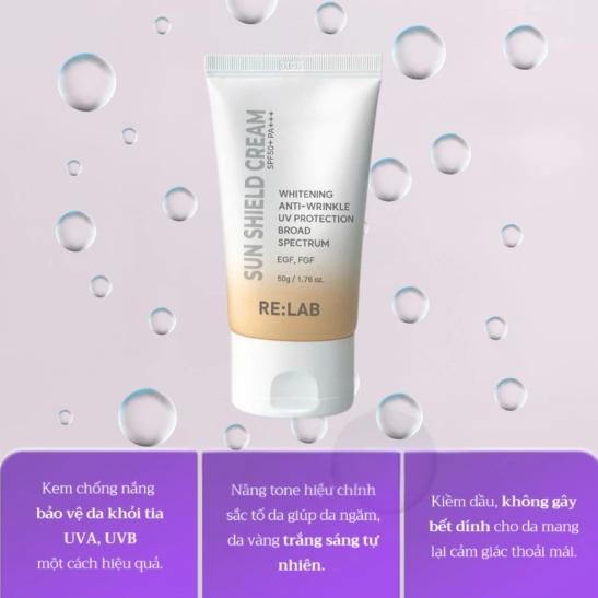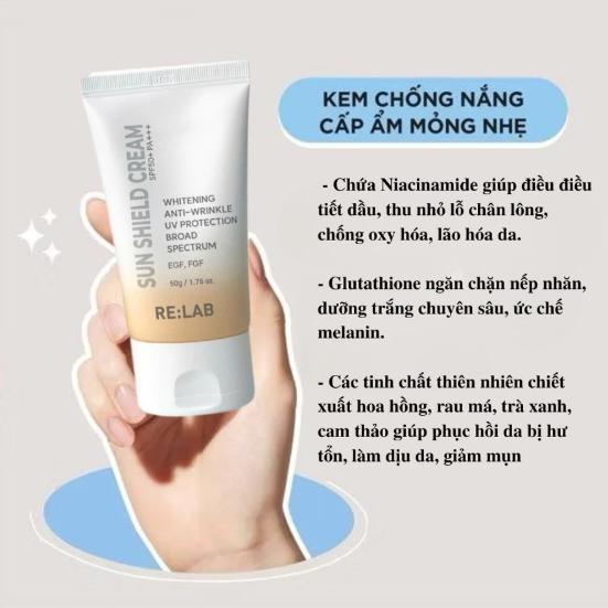 Kem Chống Nắng Phổ Rộng Re:Lab Sun Shield Cream 50ml: Bảo Vệ Da, Dưỡng Trắng Căng Bóng, Nâng Tone Hồng Hào Từ Hàn Quốc