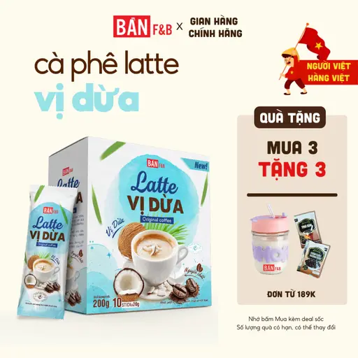 Cà Phê Latte Hương Dừa Thơm Ngon Đậm Vị Bản F&B Hộp 10 Gói x 20g
