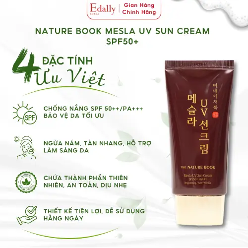 Kem Chống Nắng Ngừa Nám Nature Book Mesla UV Sun Cream SPF50+ PA+++ 50ml Dưỡng Trắng, Bảo Vệ Da Toàn Diện