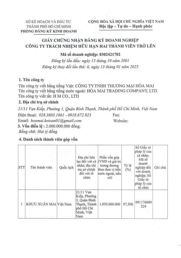 Công Ty TNHH Thương Mại Hòa Mai