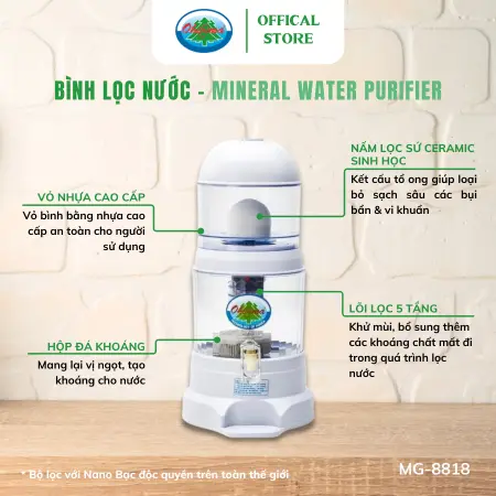 Bình Lọc Nước Ohiama Mineral Water Purifier MG-8814 16 Lit - Nguồn nước tinh khiết cho sức khỏe gia đình bạn