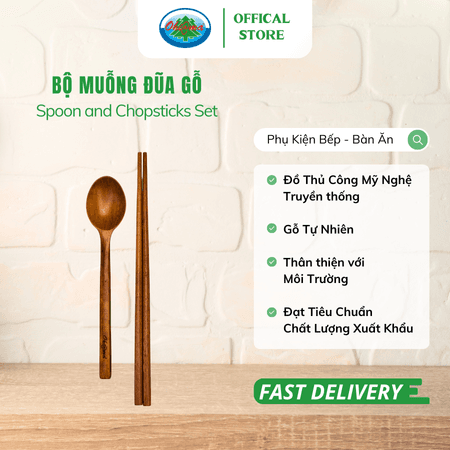 Mỗi chi tiết trong bộ muỗng đũa đều được gia công tỉ mỉ, mài nhẵn bề mặt, không sơn hóa chất độc hại, đảm bảo an toàn tuyệt đối cho sức khỏe. Đây là sản phẩm không thể thiếu trong mọi gia đình, thích hợp cho cả bữa ăn hằng ngày lẫn những buổi tiệc ấm cúng.
