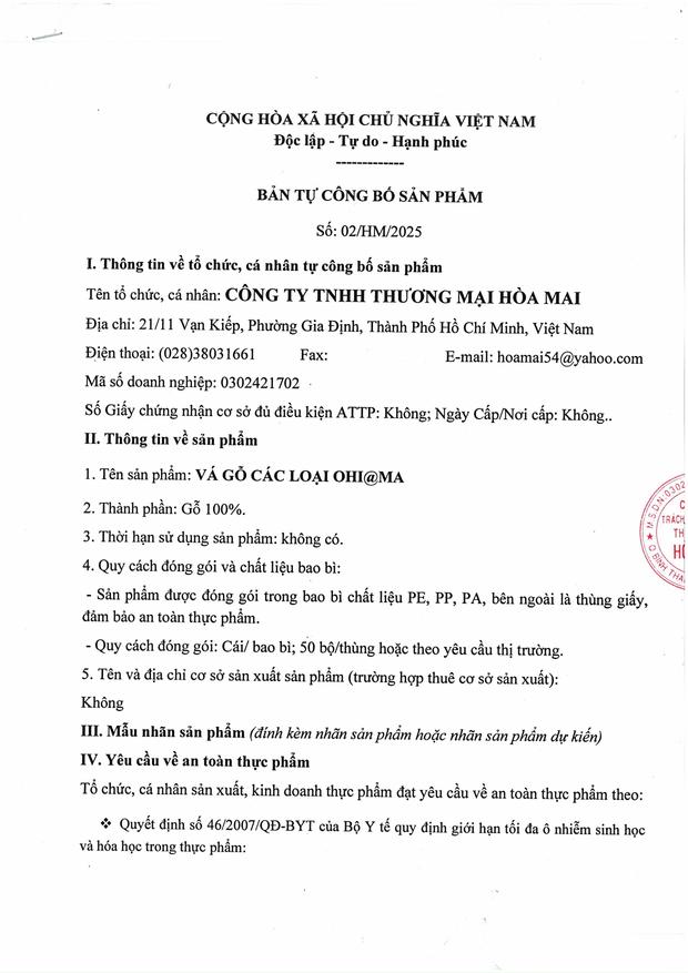 GIẤY CÔNG BỐ SẢN PHẨM