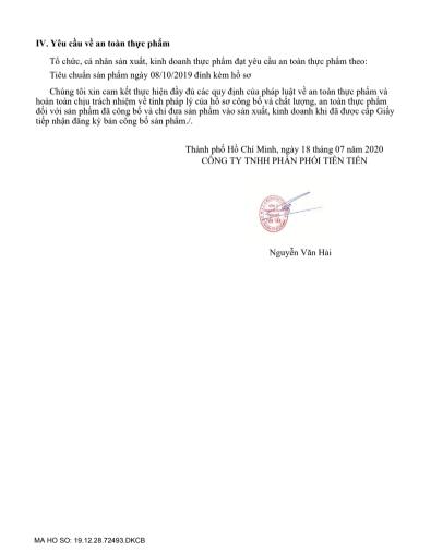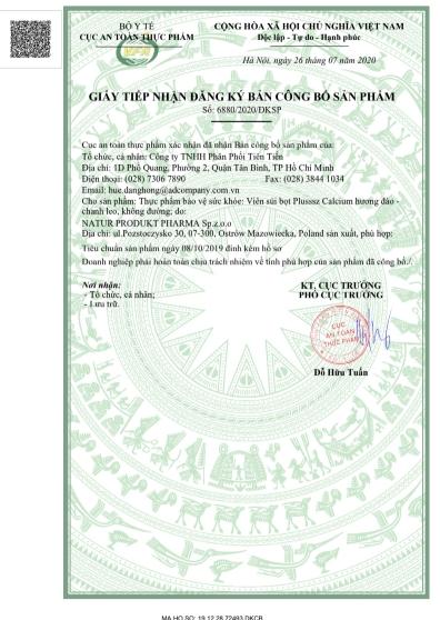 Sản phẩm đã được cấp giấy tiếp nhận đăng ký bản công bố sản phẩm theo quy định của cơ quan chức năng, đảm bảo chất lượng và an toàn cho người sử dụng.