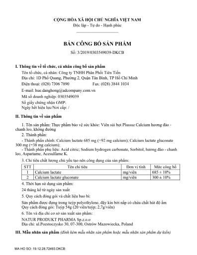 Viên sủi bọt Plusssz Calcium hương đào - chanh leo không đường đáp ứng các tiêu chuẩn chất lượng nghiêm ngặt, được công bố đầy đủ thông tin về thành phần, công dụng và hướng dẫn sử dụng theo quy định pháp luật.