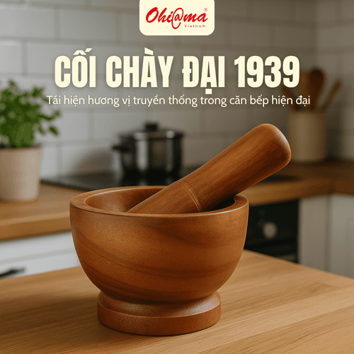 Bộ cối chày gỗ Ohi@ma là dụng cụ nhà bếp quen thuộc, gắn liền với đời sống sinh hoạt của người Việt từ bao đời nay. Dù trong thời đại hiện đại, với nhiều thiết bị xay nghiền tiên tiến ra đời, cối chày gỗ vẫn giữ một vị trí đặc biệt trong căn bếp Việt – biểu tượng của sự mộc mạc, bền bỉ và tinh tế.