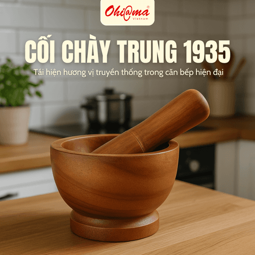 Bộ Cối Chày Gỗ Xà Cừ Ohi@ma – Mộc mạc, tinh tế cho gia đình Việt