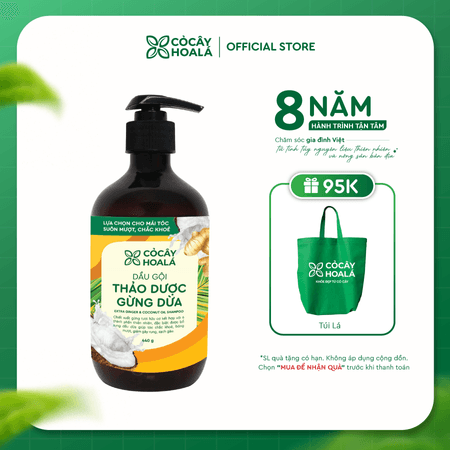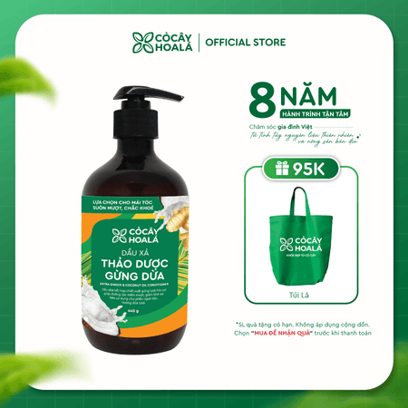 Combo dầu gội xả thảo dược Gừng Dừa Cỏ Cây Hoa Lá 440g + Tặng Túi Gel gội Gừng Sả 30ml trị giá 70.000 đồng - Bí Quyết Tóc Khỏe Mạnh Từ Thiên Nhiên