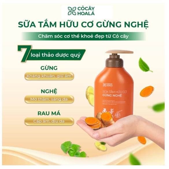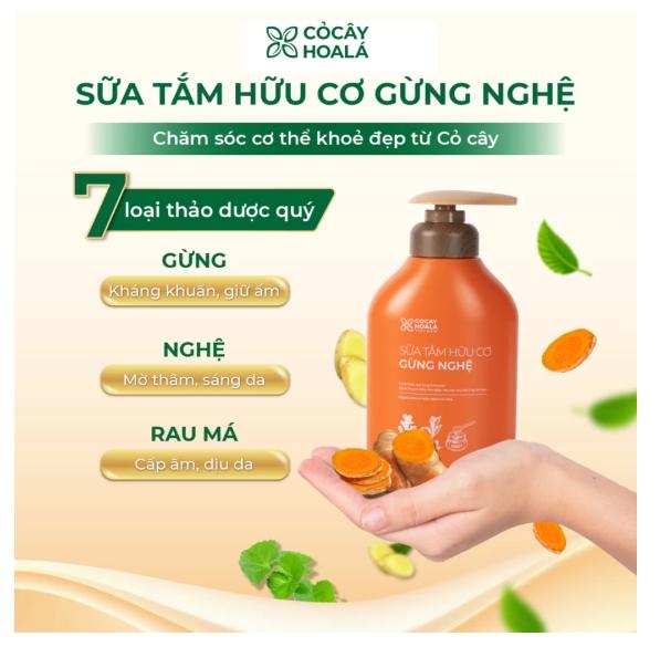 1. Sữa Tắm Thảo Dược Gừng Nghệ – Làm Sạch Dịu Nhẹ, Ngăn Mụn, Da Mềm Mịn