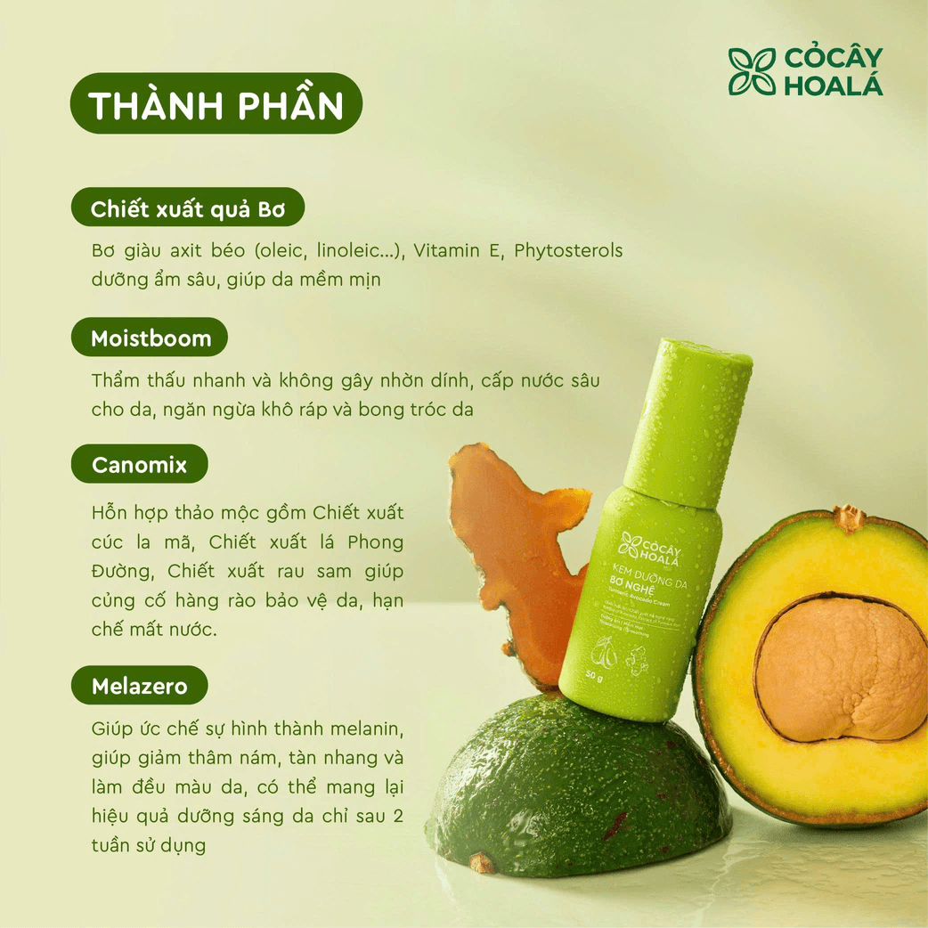 Kem Dưỡng Da Bơ Nghệ Cỏ Cây Hoa Lá 50g (Tặng Bột khử mùi Gạo Trà trị giá 80.000) - Sản Phẩm Cấp Ẩm Chuyên Sâu Từ Thiên Nhiên Việt Nam