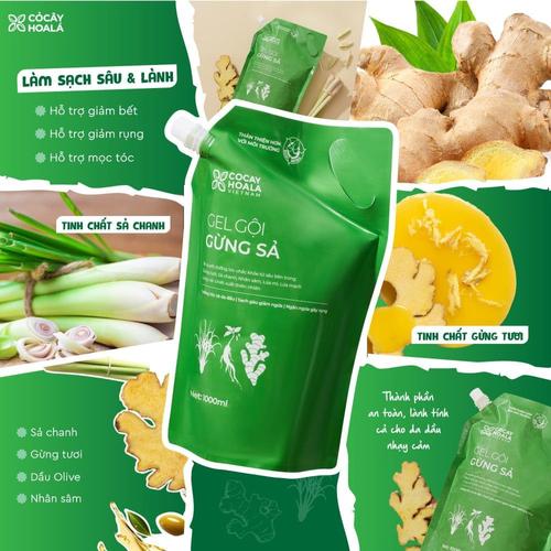 - Tên sản phẩm: Túi Refill 1000g Dầu Gội Gừng Sả.