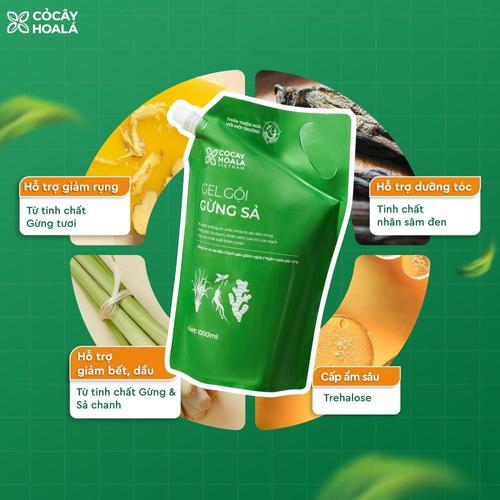 - Làm sạch sâu da đầu, giảm bết dầu và ngăn ngừa gàu nhờ tinh chất gừng và sả chanh.