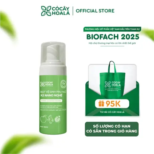 Bạn đang tìm kiếm sản phẩm vệ sinh vùng kín dịu nhẹ, an toàn cho bé gái tuổi dậy thì hoặc làn da nhạy cảm? Bọt Vệ Sinh Cho Bé Gái Tuổi Dậy Thì Dạng Bọt X2 Nano Nghệ Cỏ Cây Hoa Lá 150ml chính là giải pháp tự nhiên từ thương hiệu Cỏ Cây Hoa Lá – Top1 Startup Wheel 2023, tiên phong ứng dụng nông sản Việt như gừng, sả, nghệ và thành phần hữu cơ chứng nhận Ecocert Cosmos. Với 90% thành phần từ thiên nhiên, sản phẩm không sulfate, không paraben, không hương liệu hóa học, giúp làm sạch nhẹ nhàng, cân bằng pH, ngăn ngừa vi khuẩn và mang lại cảm giác tươi mát, thoải mái. Đây là lựa chọn lý tưởng cho bé gái dậy thì, phụ nữ da nhạy cảm hoặc sau waxing, giúp tự tin với vùng kín khỏe mạnh mà không lo kích ứng.