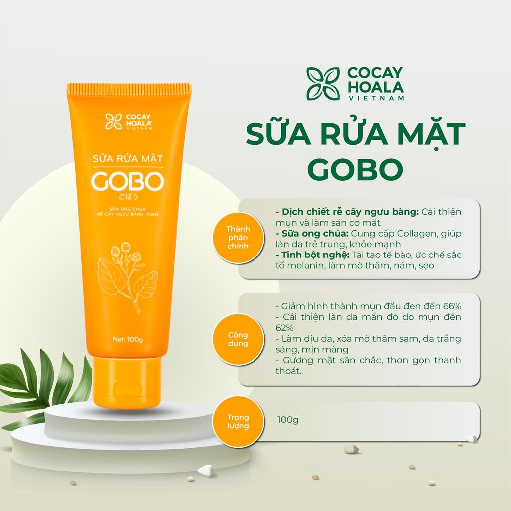 Sữa rửa mặt GOBO Cỏ Cây Hoa Lá là sự kết hợp hoàn hảo của Rễ cây Ngưu Bàng, Sữa ong chúa và Nghệ kết hợp cùng các nguyên liệu thiên nhiên lành tính khác, Cỏ Cây Hoa Lá mang tới bạn sản phẩm sữa rửa mặt phù hợp với mọi loại da, an toàn lành tính với làn da mẹ bầu, mẹ sau sinh và cả những làn da nhạy cảm nhất. Mỗi thành phần đều mang tới những lợi ích riêng: