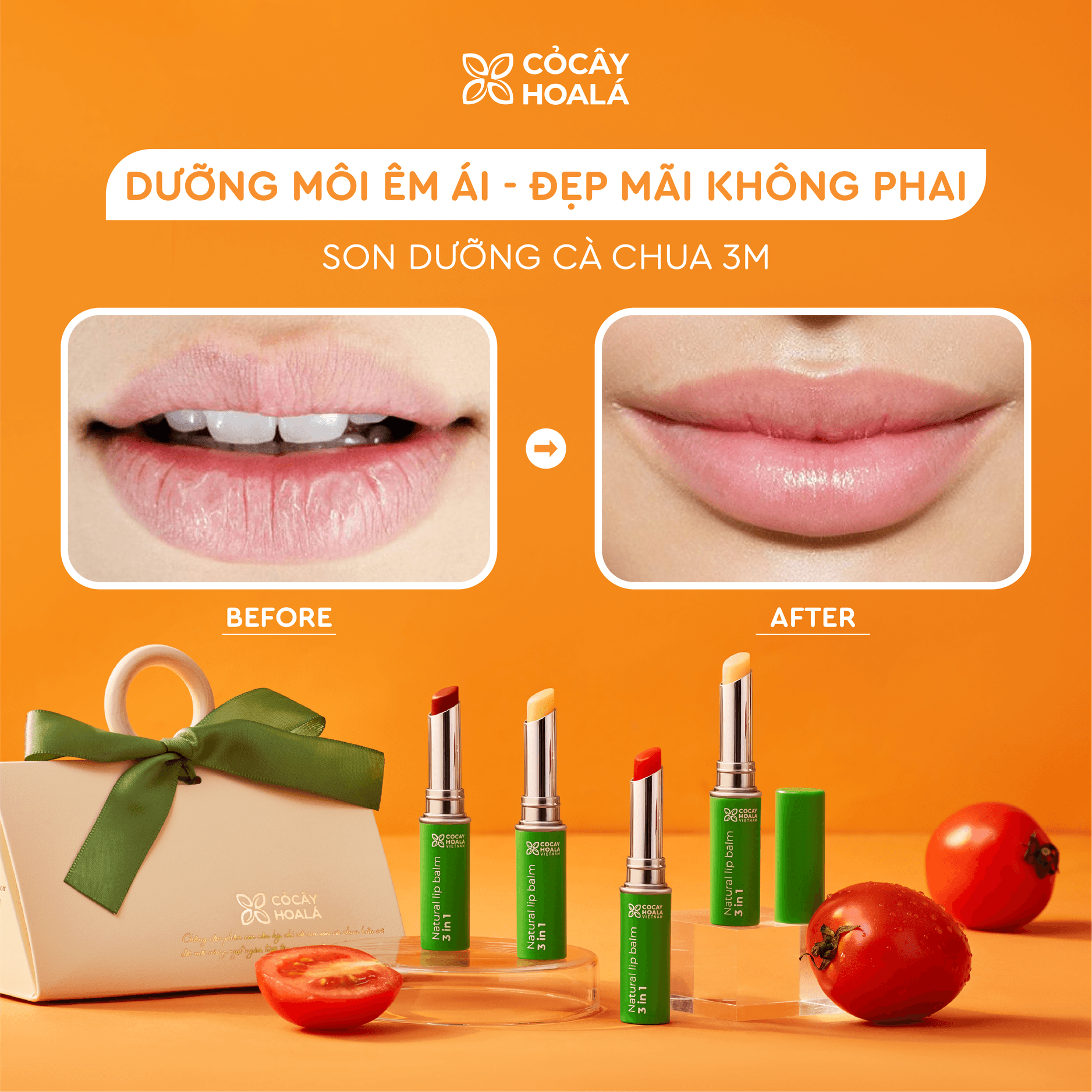 #SonDuongCaChua #SonDuongMoiTuNhien #GiamThamMoi #DuongAmMoi #SonDuong3M #CoCayHoaLa #MoiHongMong #SonDuongMeBau #SonDuongKhongBetDinh #LipBalmThienNhien