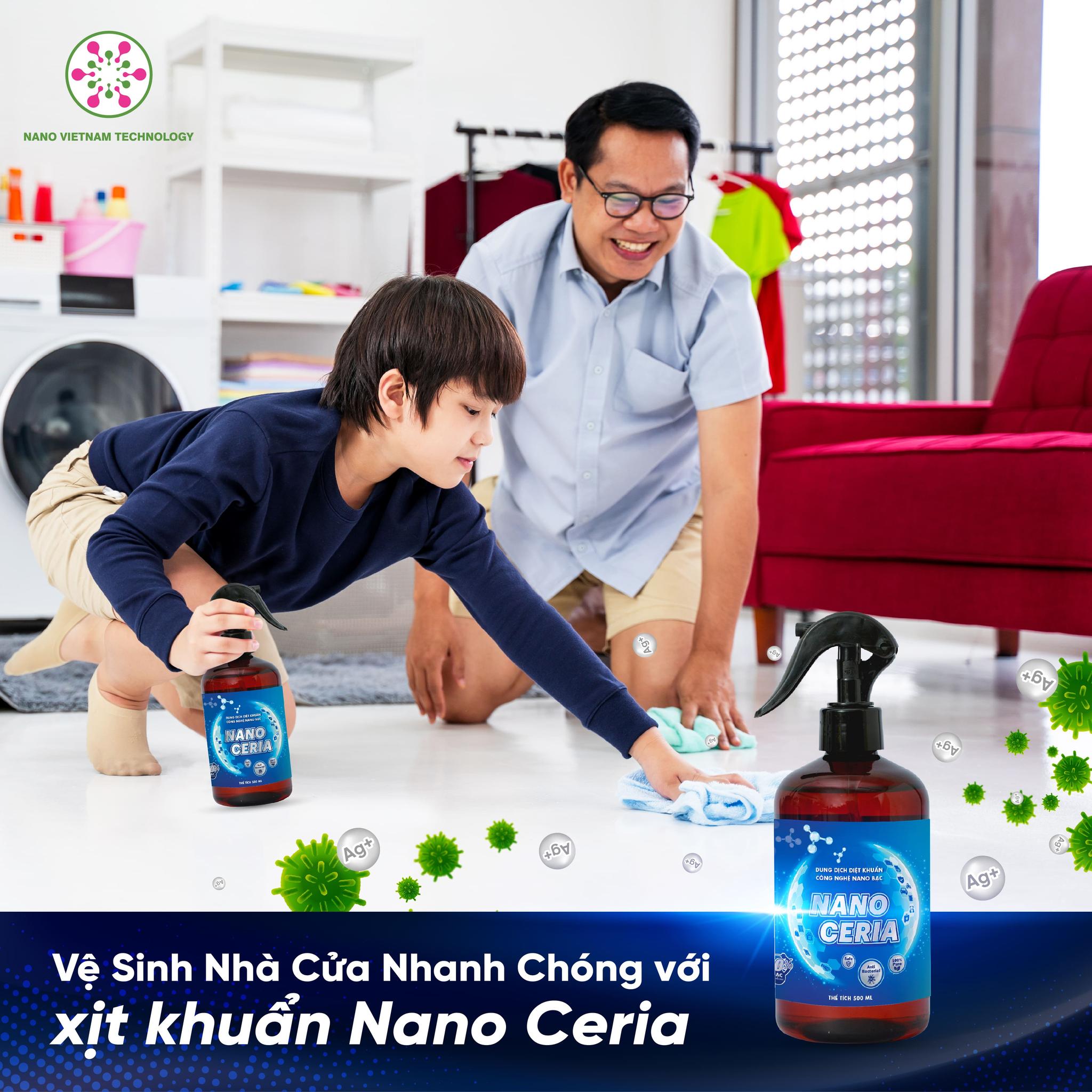 Dung Dịch Nano Bạc Nano Ceria nổi bật với nano bạc 30ppm, diệt khuẩn 99.99% và khử mùi hôi hiệu quả ngay lập tức, theo chứng nhận từ cơ quan uy tín. Không cồn, không hóa chất độc, sản phẩm an toàn cho trẻ em, thanh lọc không khí nhà cửa một cách thân thiện. Chọn Nano Ceria từ Nano Việt Nam Technology để không gian sống luôn sạch sẽ, trong lành, bảo vệ sức khỏe gia đình bạn!