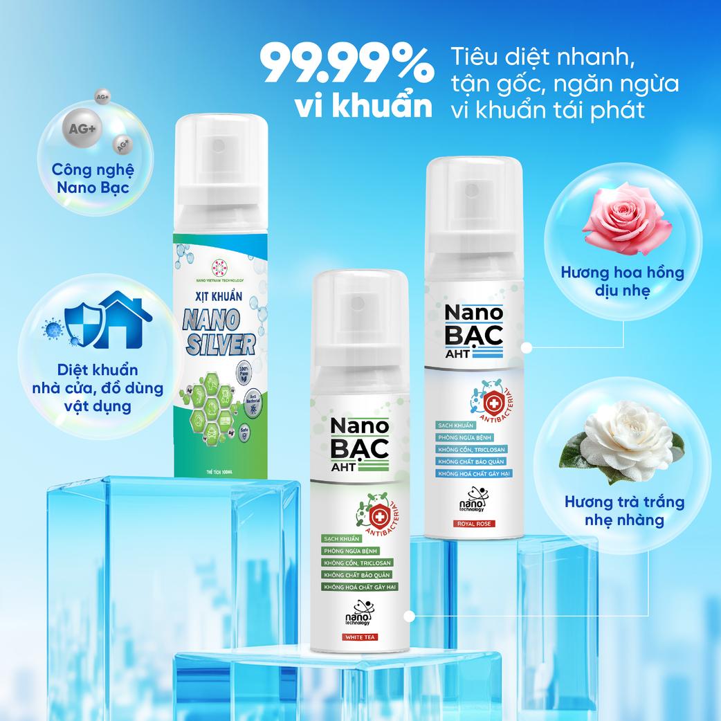 Công ty CP Nano Việt Nam Technology (Nano AHT) dẫn đầu trong công nghệ nano tại Việt Nam, tập trung sản phẩm thân thiện môi trường. Xịt Kháng Khuẩn Nano Bạc AHT là dung dịch khử khuẩn đa năng, sử dụng nano bạc nguyên chất để diệt khuẩn hiệu quả, an toàn cho trẻ em và vật nuôi, không chứa cồn hay hóa chất độc hại.