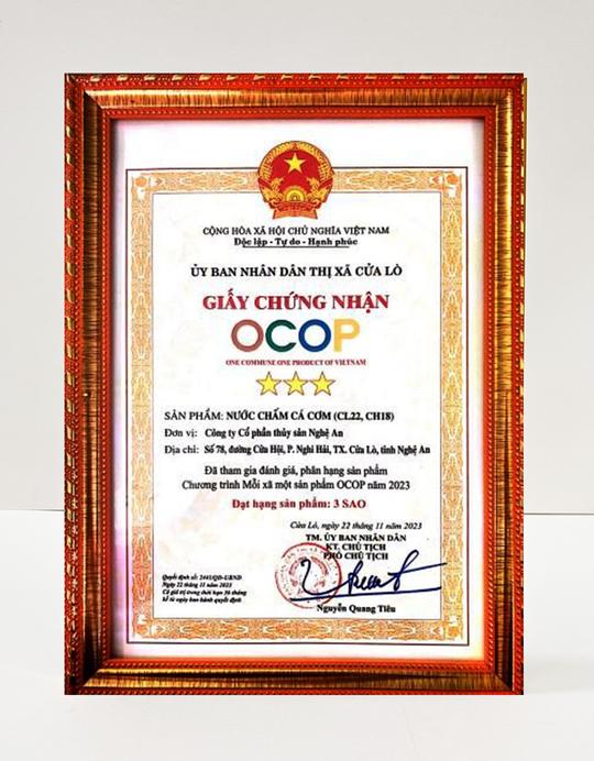 Với uy tín và chất lượng đã được khẳng định, nước mắm Cửa Lò vinh dự đạt được nhiều giải thưởng và chứng nhận danh giá: