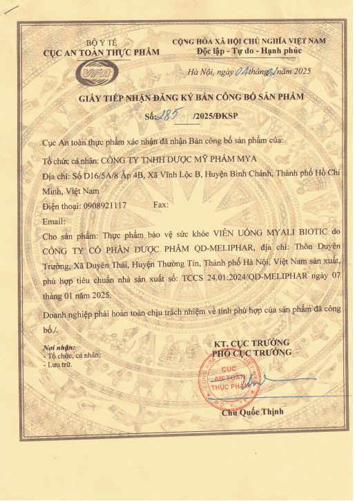 Myali là thực phẩm bảo vệ sức khỏe dạng men vi sinh, kết hợp lợi khuẩn nhập khẩu từ Mỹ và các thảo dược tự nhiên, giúp cân bằng hệ vi sinh vùng kín, tăng cường sức đề kháng và hỗ trợ sức khỏe sinh sản cho cả nam lẫn nữ.