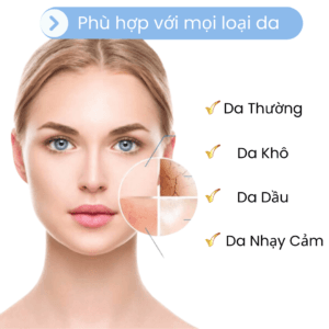 - Phù hợp cho mọi loại da, bao gồm da mụn, da nhạy cảm, da khô hoặc da dầu.