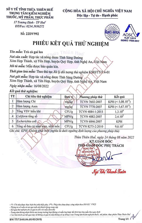 - Sản xuất tại: Hợp tác xã Nông Dược Tĩnh Sáng Đường.