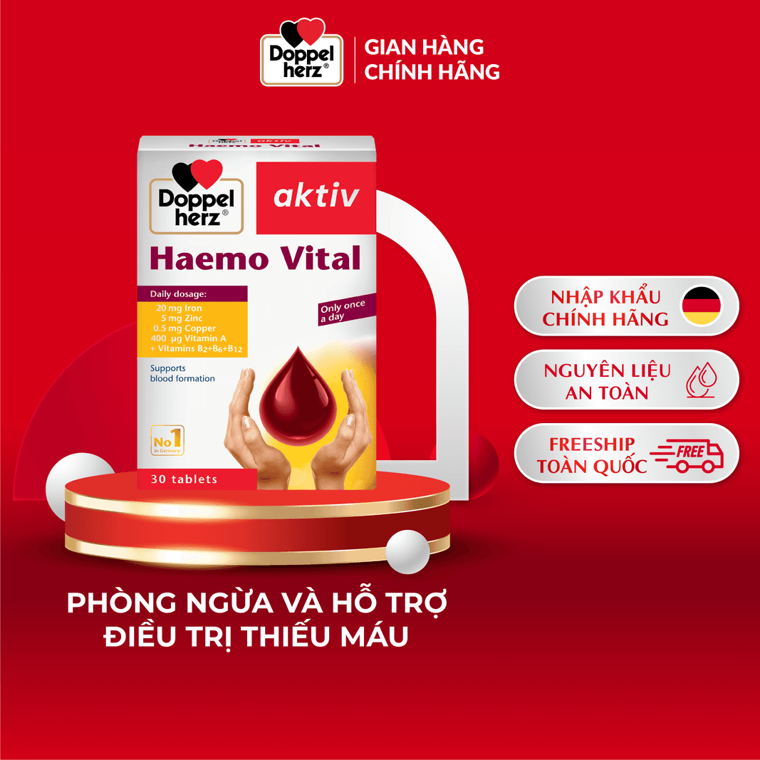 Viên uống bổ sung sắt Doppelherz Haemo Vital hỗ trợ phòng ngừa thiếu máu (Hộp 30 viên)