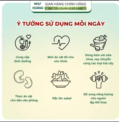 - Kết hợp cùng salad, ngũ cốc, sữa chua, hoặc dùng làm topping cho các món ăn healthy.