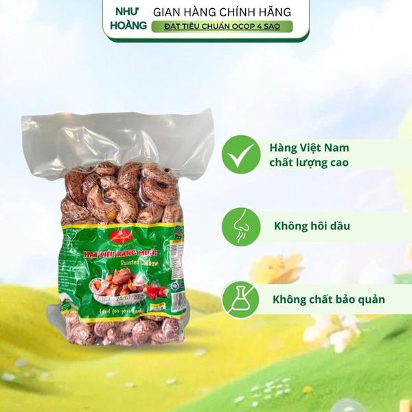 Hạt điều rang muối từ lâu đã là niềm tự hào của nông sản Việt. Với Hạt Điều Rang Muối Như Hoàng -OCOP 4 Sao, mỗi hạt điều đều được chọn lọc kỹ lưỡng, rang muối theo công thức truyền thống, giữ trọn độ giòn - thơm - bùi tự nhiên. Sản phẩm được đóng trong túi hút chân không 500g, chắc chắn, thích hợp dùng hằng ngày, đãi khách hoặc làm quà biếu tinh tế.