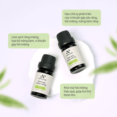 Tinh dầu răng miệng AN Naturals giúp hỗ trợ làm sạch khoang miệng, giảm vi khuẩn gây hại và mang lại hơi thở thơm tho. Sản phẩm chiết xuất từ tinh dầu thiên nhiên an toàn, phù hợp dùng hàng ngày để bảo vệ sức khỏe răng miệng.