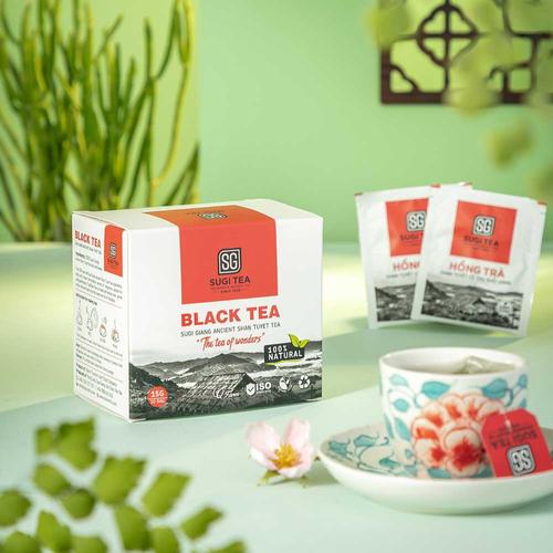 Hồng Trà Túi Lọc SUGITEA là sản phẩm trà cao cấp được chiết xuất từ những búp và lá trà Shan Tuyết cổ thụ tại Suối Giàng, với tuổi đời lên đến 300 năm. Hương vị hồng trà mang sức hút kỳ lạ, mê đắm như một bản nhạc hòa tấu thanh âm trong trẻo của người con gái mới yêu. Màu hổ phách sóng sánh trong từng tách trà không chỉ khơi dậy vị giác mà còn gợi nhớ về một thanh xuân đầy hữu tình, mang đến sự thư thái và tinh tế cho mọi khoảnh khắc thưởng thức.