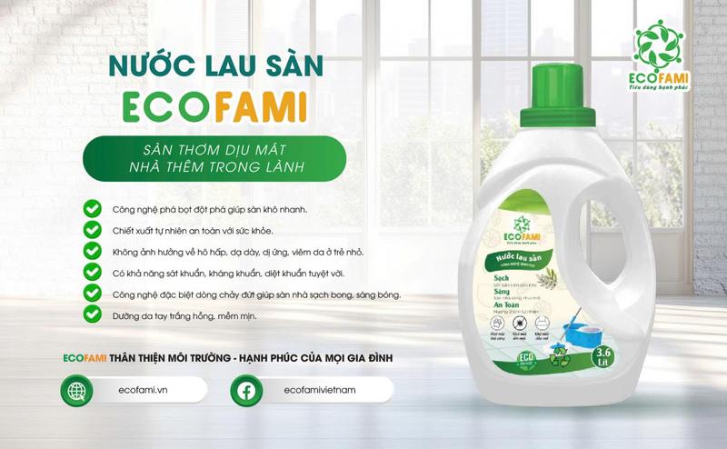 Nước Lau Sàn Ecofami 3.6kg: Sàn Khô Nhanh Tức Thì, Sát Khuẩn Nano – An Toàn